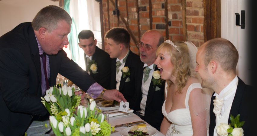 Therefore, if the background noise is increased such as would happen if a band, singer or DJ were performing at the same time as Kevin, or if the lighting is reduced, as often happens during an evening function, this can have an adverse effect of the ability of your guests to enjoy the wonderful magic that Kevin performs. An analogy would be the effect these things would have on people's ability to enjoy the Best Mans speech at Wedding.